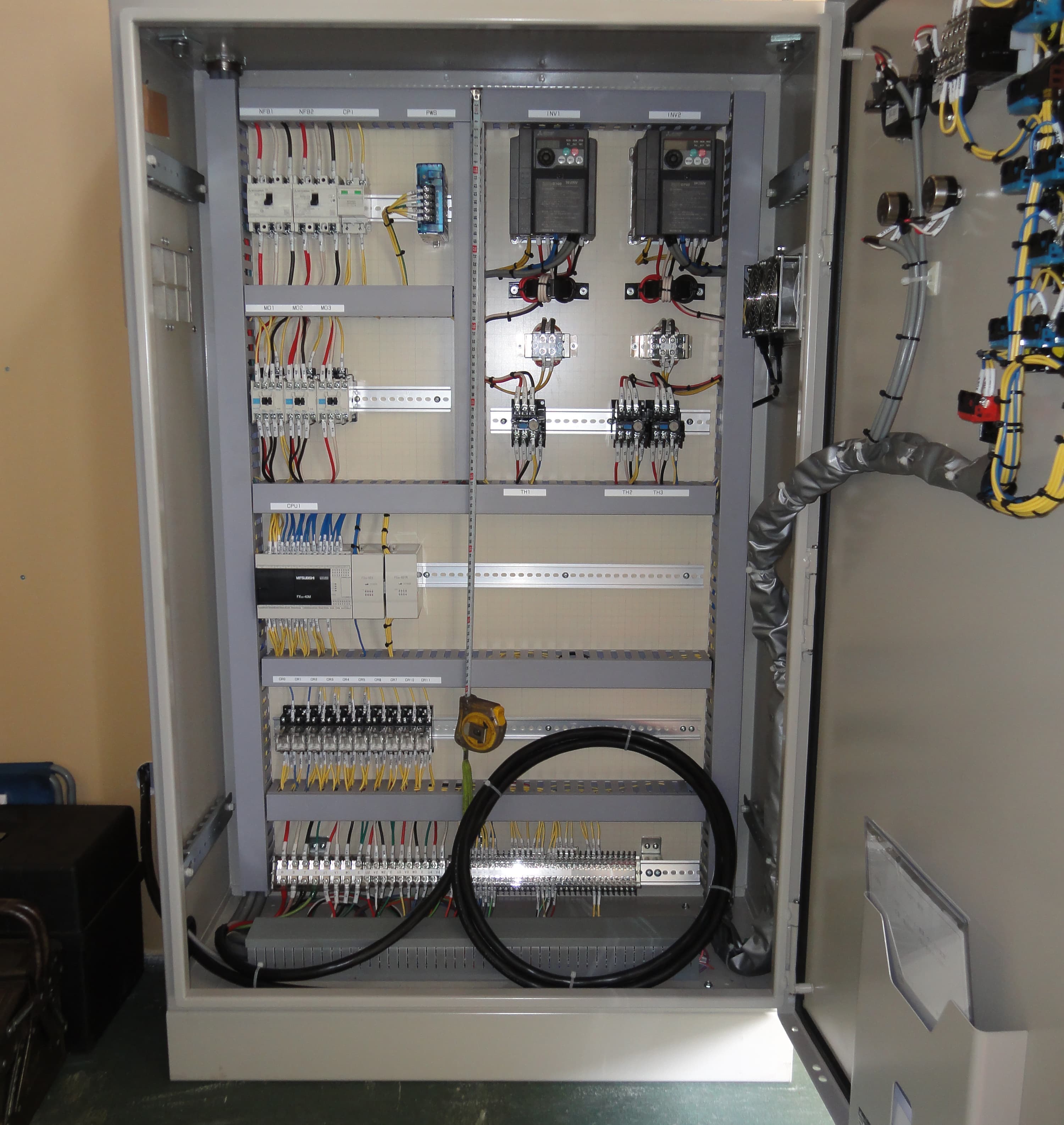 リレー盤を更新して、シーケンス制御にしたい。又、モーターをインバーター制御にしたい。等、電気制御装置のみの製作も承っております。